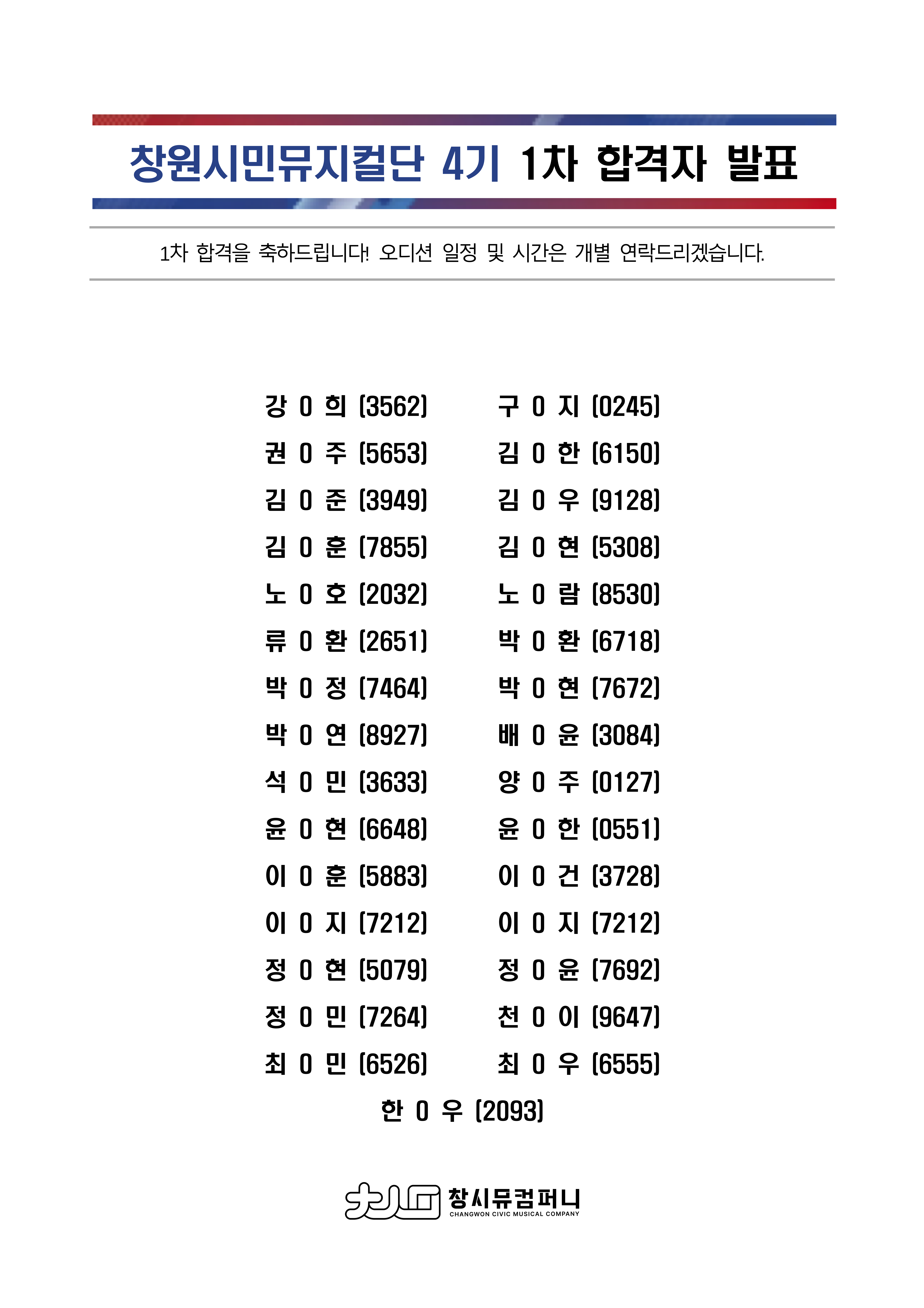 [2024 창원시민뮤지컬단 4기 배우모집] 1차 합격자 발표