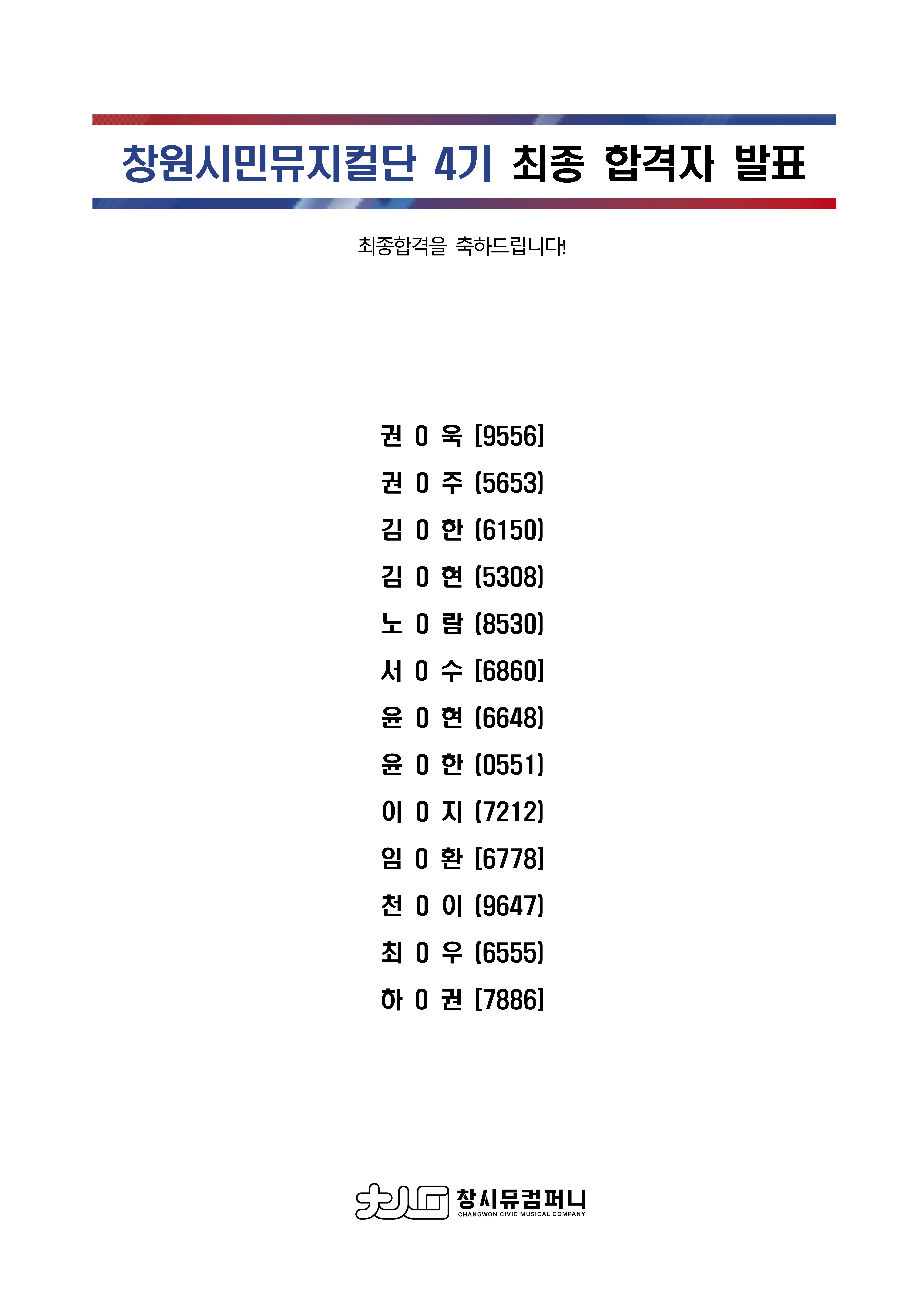 [2024 창원시민뮤지컬단 4기 배우모집] 최종 합격자 발표