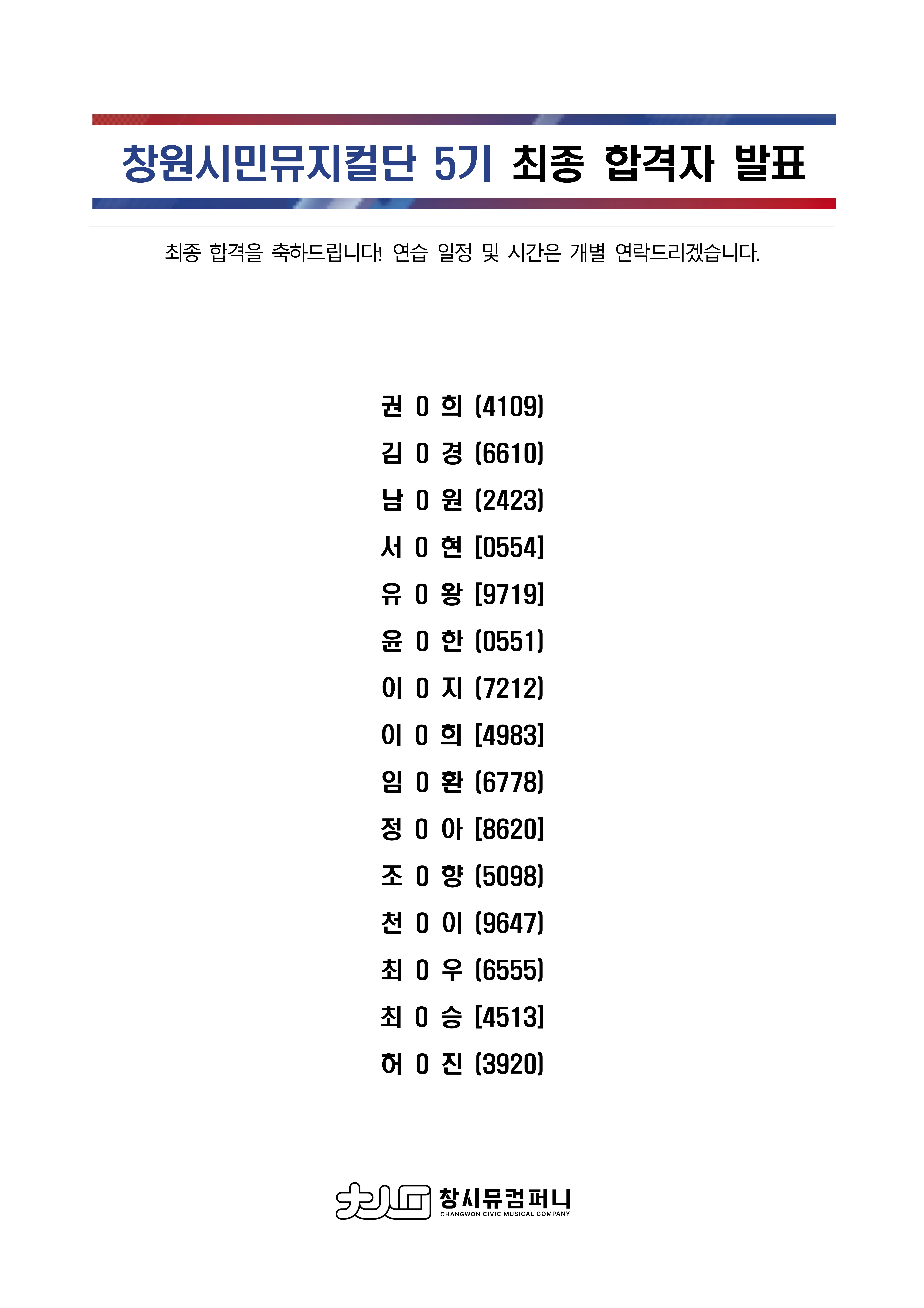 [2025 창원시민뮤지컬단 5기 배우모집] 최종 합격자 발표