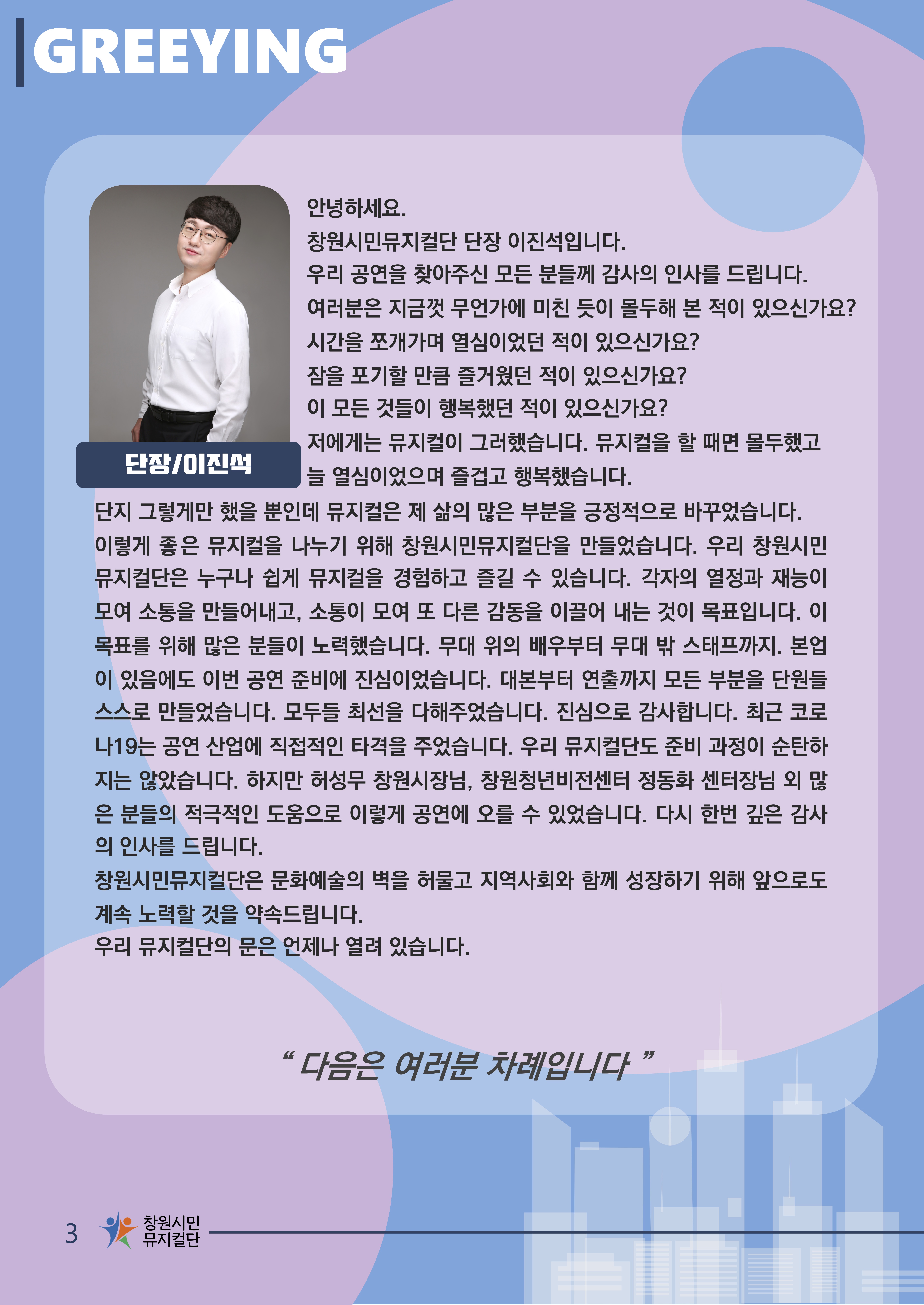 뮤지컬로 사람을 잇고 뮤지컬로 세상을 감동시킵니다.